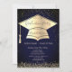 Invitación Gorrito de graduación dorado, diamantes y confeti