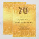 Una invitación moderna, elegante y glamurosa para una fiesta de cumpleaños número 70. Un fondo falso de aspecto metálico dorado con goteos falsos de purpurina, pinturas de goteo. El nombre está escrito con una escritura de estilo con letras a mano moderna. Personalice y agregue los detalles de su fiesta. El número 70 se escribe con un tipo de letra, guión.
