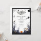 This eerie and enchanting invitation features a black crow silhouetted against a foggy sky, with flying bats swirling around it. The words "halloween party" are written in a gothic font, adding to the invitation's ominous feel. It's the perfect way to invite your friends to a spine-chilling Halloween party where they can come dressed up in their costumes and have a spooktacular time.