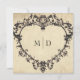 Invitación Gothic Black Tan Parchment Filigree Heart Wedding
