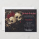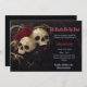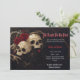Elegante, oscura invitación a la boda gótica con cráneos y rosas.
