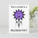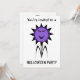 Esta espeluznante invitación a la fiesta de Halloween incluye a un personalizado de una flor malvada con pétalos negros y hojas negras marchitas y una cara morada con ojos demoníacos rojos y un siniestro aullido. El diseño es una mezcla de estilos kawaii y gótico y es ideal para Halloween o para personas a las que les gusta algo un poco diferente. Hay texto de personalizable en la parte posterior para que puedas personalizar esta invitación.