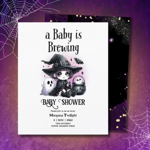 Un Gótico muy lindo y divertido para la ducha de bebé. Ver la colección completa de elementos coincidentes. Tema de color morado y negro. Incluido en el set se está preparando el bebé, pequeño libro en el camino, invitaciones, tarjetas de raffle de pañales, cajas de favores, bolsos de goody, carteles, pegatinas, camisetas, tarjetas de agradecimiento y más. Los temas incluyen: brujas, fantasmas, murciélagos, cuervos, demonios, género neutro y temática de niños y chicas. ¡Mucho para elegir!