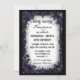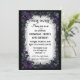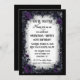 Un marco negro ornamentado rodeado de flores negras y blancas y rosas morados profundos en las esquinas hace de esta invitación a la fiesta de cumpleaños perfecta para la celebración gótica. Funciona bien para un adulto o adolescente.