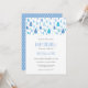 Elegantes gotas de lluvia azules caen hacia tus detalles personalizados en esta linda invitación de baby shower o baby sprinkle de parejas. El reverso presenta una lluvia adicional de gotas, añadiendo un toque extra a tu evento especial. Diseñado por Thisisnotme©
