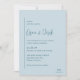 Invitación nupcial moderna con un diseño geométrico sencillo y mínimo, con una línea vertical a lo largo del lado izquierdo con los detalles alineados a la izquierda. Sus nombres están en un guión de escritura a mano para un toque elegante. En la esquina inferior derecha están los dos monogramas iniciales sobre una pequeña línea horizontal. La paleta de colores puede cambiarse en la herramienta de edición de diseño.