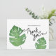 Envíe una hoja de palma tropical botánica GRACIAS A USTED tarjeta con un dibujo usando pinceles de medios mixtos para dar textura extra. La caligrafía de agradecimiento también fue escrita a mano para una elevación de moda. También puede ser una antigua planta de monstera que se ha convertido en la planta interior tropical más popular.
