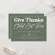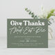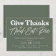 Celebremos el espíritu de gratitud con nuestra elegante invitación a cenar verde del día de Acción de Gracias. Esta hermosa tarjeta de diseño cuenta con un rico fondo verde, perfecto para dar un tono cálido y acogedor a su reunión de vacaciones. La invitación transmite elegantemente el mensaje de "dar gracias y comer pastel", lo que lo hace una elección ideal para invitar a la familia y amigos a compartir la alegría del banquete de Acción de Gracias.