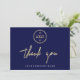 Invitación Gracias, Golden Script Business Logo Marina Azul