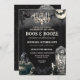 Crea un memorable fiesta o fiesta de cócteles para adultos con esta divertida invitación de los Boos y Booze de la Mummy Bats Halloween. Con la perfecta combinación de candelabros góticos, murciélagos, una mística luna, caldero burbujeante con una momia y esqueleto saliendo de un cementerio, ¡esta es la invitación perfecta para la fiesta de Halloween para tu fiesta anual de la historia o de la oficina! Personaliza las invitaciones de tu fiesta en minutos. Contáctenos para solicitar la coordinación de los suministros y papelería de los fiestas.
