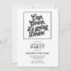¡Esta invitación a la fiesta de graduación tiene una gran tipografía! ¡Esta invitación en blanco y negro es minimalista y le da un toque de humor! ¡A la familia y a los amigos les encantará! Vea la coordinación de artículos en nuestra tienda, Enchanted Finch.