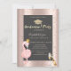 Invitación Grad Cap, Vino,Flamingo Rosa Graduación de Oro