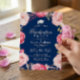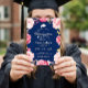 Invitación Grad Floral Wreath Navy Blue Graduation Party
