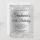 Crea tu propia y elegante invitación para celebrar el cumpleaños de un hito para ella. Los gráficos decorativos de purpurina de plata brillante forman un borde superior e inferior. El arte digital de fondo presenta un brillante gradiente gris claro satinado. Personalizar los colores o estilos de fuente de invitación. Los lujosos destellos, brillo y purpurina se crearán con elementos artísticos que se imprimirán como una foto. Fabulosa invitación de cumpleaños número 50 para tu mejor amigo.