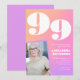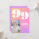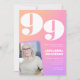 Invitaciones de cumpleaños número 99 con gradiente retro rosa para ella con foto