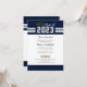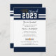 Crea tu propia tarjeta de invitación moderna en azul marino y blanco para graduación de secundaria o universitarios que el fiesta invita a la familia y amigos a celebrar tu hito y logro. Invitación simple con un gorro de graduación y desplazamiento. Esta tarjeta de invitación es perfecta tanto para graduados masculinos como femeninos y es fácil de personalizar, haciendo clic en el botón "Personalizar" de arriba. Consulta nuestra colección de graduación de tienda que tiene productos adicionales para el fiesta o conéctate. Hay objetos como pancartas, pancartas, letreros de jardín y artículos de fiesta para hacer que sus huéspedes se sientan bienvenidos y tengan una experiencia memorable.