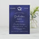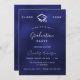 Una moderna y elegante invitación a la fiesta de graduación. Un fondo azul marino, texto blanco. El color azul es desigual. Personalice y agregue un nombre, año y detalles.