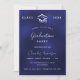 Una moderna y elegante invitación a la fiesta de graduación. Un fondo azul marino, texto blanco. El color azul es desigual. Personalice y agregue un nombre, año y detalles.