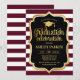 Invitación a la fiesta de graduación para hombres y mujeres. Elegante carta de invitación en marrón burdeos, negro y dorado. Diseño sencillo y moderno con rayas, un tapón, un tipo de letra falso purpurina de oro y tipografía. Perfecto para una elegante celebración de graduación.