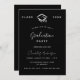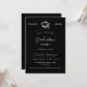 Una moderna y elegante invitación a la fiesta de graduación. Un fondo negro, texto blanco. Personalice y agregue un nombre, año y detalles.