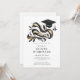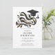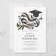 Una moderna y única invitación a la fiesta de graduación con una gorra de grado y un ilustracion de cinta. Personalizar con tu curso de graduación. Personalizar de un grado universitario o de secundaria.