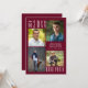 Diseño de texto clásico y moderno con cuatro fotos de tu graduado para invitar a los invitados a la fiesta de graduación. La fecha y hora del fiesta están en la parte delantera y los detalles de la invitación de la fiesta están en la parte trasera. CAMBIOS: Puede cambiar el color de fondo haciendo clic en la ficha PERSONALIZAR MÁS AÚN. PUNTO DE FOTOGRAFÍA: Para obtener resultados más rápidos/mejores, elija una foto con el sujeto en el medio y/o pre-recorte en una forma similar a la que se muestra ANTES de subir. Póngase en contacto con el diseñador a través de Zazzle Chat o makeitaboutyoustore@gmail.com si desea modificar este diseño, en otro producto o si desea coordinar elementos.