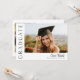 Esta elegante y moderna invitación de graduación con foto presenta una foto horizontal y titular con nombre y texto personalizables con letra manuscrita en la parte frontal. La parte trasera tiene una invitación con detalles de la fiesta. Una excelente manera de mostrar a su graduado. Haga clic en el botón de edición para personalizar este diseño.