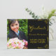 Clase de 2024 invitaciones para graduación con una foto de un graduado con fondo negro decorado con un marco de oro falso. Esta moderna y elegante invitaciones a los grad para ella con el tipo de letra del guión es fácil de personalizar y personalizar usando la plantilla.