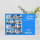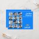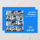 Este diseño presenta fotos de graduación en los colores de tu escuela azul azulado, y una cuadrícula de collage de imágenes con varias fotos, con un código QR para la URL en línea del sitio web, la página de eventos de medios sociales e icono de Facebook. un minimalista moderno y simple, para estudiantes de secundaria o universitarios, un texto básico de tipo de letra mínimo de tipografía, un moderno gorro de tabla de mortero, 12 plantillas de diseño de fotos, invitaciones para graduación de graduación de graduación de graduación para fiestas de graduación una invitación de fotos de fiestas de grado, con clase de nombre escolar del año