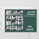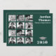 Este diseño presenta fotos de graduados graduados y una cuadrícula de collage de fotos con colores verdes oscuros, con un código QR para la URL en línea del sitio web, la página de eventos de medios sociales e icono de Facebook. un minimalista moderno y simple, para estudiantes de secundaria o universitarios, un texto básico mínimo de tipografía, un moderno gorro de tabla de morteros, 12 doce plantillas de diseño de fotos, invitaciones para fiestas de graduación, un posgrado invitaciones fotográficas de fiestas, con clase de nombres escolares del año