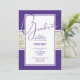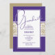Banda Damask en oro y blanco bordeada en morado en estas invitaciones a la fiesta de graduación. COLORES PREHECHOS en nuestra tienda. **SUGERENCIA: Para cambiar los colores, haga clic en el enlace personalizar adicional, introduzca el código hexadecimal de color en el cuadro #xxxxxx para que coincida con los colores de la escuela.