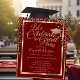 Tapa de graduación de purpurina de oro y diamantes de oro sobre fondo rojo.
