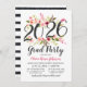El diseño de una invitación a una fiesta de graduación presenta un moderno diseño floral de Fiesta Grad 2025, acentuado por una bella coloración de color agua pintada de color verde y dalia de primavera rosa pastel, rubor y melocotón y flores rosas. El elegante texto negro suave y rosa brillante puede ser totalmente personalizado para el evento especial de tu graduado. Un patrón de tiras de pizarra negras blandas se viste en la parte posterior de esta elegante tarjeta de dos lados.