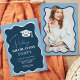 La planificación de una fiesta de graduación acaba de ser mucho más bonita con nuestra invitación para graduación de fotos de cuadros ondulados de color azul marino retro. ¡Prepárate para celebrar con estilo! Nuestra invitación para el grad incluye un guión moderno en un marco ondulado y ondulado con topper. Todos los colores son editables. ¡Celebración de la Clase Perfecta de 2024! Añade tu foto al fondo.