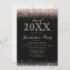 Invitación Graduación de Foto en Negro con Brillo Rosa Rubor