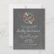 Una invitación a graduarse con un ilustracion encima de una corona de flores y vegetación rojas y azules. 2014 está en el centro de la corona. El fondo está inspirado en la pizarra. Personalice el texto en blanco con los detalles de su ocasión. Personalizar el lado opuesto con tu foto.