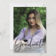 Foto por delante y por detrás... Buena invitación de invitación a graduación de escritura informal con el icono de la gorra de graduación de mortarboard, perfecto para el grado de secundaria o universitario. Tipografía minimalista moderna, escritura informal elegante "Graduate". Captura esos momentos especiales de crecimiento y sonrisas de alegría y juventud para siempre. Subir una foto de portada en modo retrato completo del graduado en la parte delantera, y una foto de orientación al paisaje, así como detalles pertinentes de la fiesta de graduación en la parte de atrás. Sombra automáticamente las zonas perfectas de la foto.