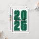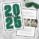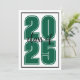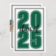 Invitación de graduación vertical y invitación de fiesta sin tiempo. La parte delantera presenta el año "2025" en gran letra en negrita, con "clase de" elegantemente escrito en escritura a lo largo del medio. Esta versión muestra una combinación de colores clásica en verde, negro y blanco, pero todos los colores (incluidos el año, el texto del guión y el marco) se pueden personalizar para que coincidan con los colores de la escuela o las preferencias personales. El color de fondo también se puede ajustar para un toque personalizado. La parte de atrás se transforma en una invitación para una fiesta de graduación, con tres anuncios de fotos centrados para mostrar momentos memorables del graduado. Debajo de las fotos, los detalles del evento como la fecha, hora, ubicación e información de RSVP están ordenados cuidadosamente para facilitar su lectura. El diseño mantiene una apariencia limpia y pulida, con un color de marco de personalizable que se corresponde con la parte delantera. Completamente editable para adaptarse a tu estilo, esta invitación es la forma perfecta de celebrar e invitar a los seres queridos a unirse a las festividades!