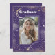 Esta fiesta de graduación invita a los radios con energía vibrante, profundidad y pensamiento cuidadoso, donde cada elemento gráfico está perfectamente conectado, colocando la foto del graduado en su corazón. El telón de fondo evoca una noche estrellada, en la que la luna arroja un resplandor dorado cerca de la parte superior, iluminando perfectamente la palabra "graduado", mientras que una estrella fugaz recorre con gracia la esquina inferior, añadiendo un toque de magia a la escena. Incluso con sus intrincados ilustraciones celestes, la foto del graduado sigue siendo la característica destacada, y llama la atención como el foco central contra la rica cubierta morada. En cambio, reina la sencillez con unos gráficos mínimos, lo que permite que brillen los detalles esenciales del fiesta. Esta invitación le habla a cualquiera que sienta que flotan entre las estrellas después de lograr sus sueños. Es perfecto para el soñador, el mirador, el futuro científico de la NASA, o el alma espiritual que encuentra magia en el cosmos, ya sea a través de la astrología o el tarot.