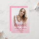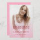 Anuncios modernos y mínimos de graduación de tipografía con foto, divertida invitación a fiesta de graduación en la parte de atrás en rosa, rojo y blanco, Personalizado con tu propia foto e información fiesta.