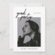 Una invitación minimalista y moderna a la fiesta de graduación de fotos en blanco y negro, diseñada con elegantes letras de guión. Personaliza con fotos e información en la parte delantera y trasera de la tarjeta.