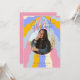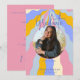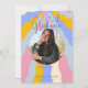 Sencilla, moderna y elegante, esta invitación presenta el escenario de centro de fotos favorito del graduado en un círculo en el centro de un diseño de onda retro de lavanda morada, rosa rosa, naranja, azul y crema. La parte posterior proporciona sus detalles personalizados sobre un sencillo fondo de lavanda. Creado por Simply Farmhouse Press.