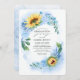 Invitación Graduación de girasol amarillo e hidrangea azul