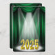 Texto Gold 2025 en el foco de atención con cortina de escenario verde para la invitación a la fiesta de graduación.