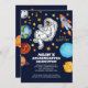 El diseño de graduación de jardín de infantes presenta a su astronauta rodeado de planetas y estrellas.