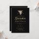 Un ilustracion falso-dorado del símbolo caduceum para la profesión de enfermería con rosas y vegetación púrpura, así como algunas rociadas de purpurina (¡todo son efectos digitales!) decora esta elegante y clásica invitación a la fiesta de graduación de la escuela de enfermería, sencilla pero sofisticada, atemporal y elegante. El diseño de la tipografía contemporánea se eleva por los tonos dorados y la disposición minimalista. Personalizar cada línea de texto. Negro, blanco, morado y dorado.