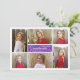 Fondo color de uva morado con marco blanco con 6 de tus imágenes, elegante invitación moderna de graduación. Usa seis de tus hermosas fotos senior o instantáneas digitales para una tarjeta grad de fotos fácil.