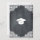 Tarjeta de invitación a la celebración de graduación. Fondo de pizarra negra y decoración de encaje blanco. Hay más artículos disponibles en este estilo en nuestra tienda. Puede editar el diseño más adelante, cambiar el color de fondo, las fuentes y añadir texto adicional haciendo clic en el vínculo "Personalizar esta plantilla" y, a continuación, en el vínculo "Hacer clic en el personalizar más adelante".