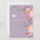 ¡Llamando a clase de 2023! Flores silvestres pastel románticas primavera verano fiesta de graduación de casa abierta con flores de campo silvestre bonito en rosa, melocotón, púrpura, lavanda, hojas verdes y más, con una tipografía de escritura cepillada en un elegante edredón editable sobre fondo de lavanda morado