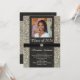 Elegante y moderno purpurina y cinta con imágenes de piedra de piedra. Foto y texto personalizados. fondo de impresión glamoroso y elegante de color negro y plata con cinta satinada negra y falsa joya diamante de imitación. Una tarjeta de graduación de moda femenina, linda y bonito para la mujer, ideal para la fiesta de graduación de la casa abierta o el evento de graduación.